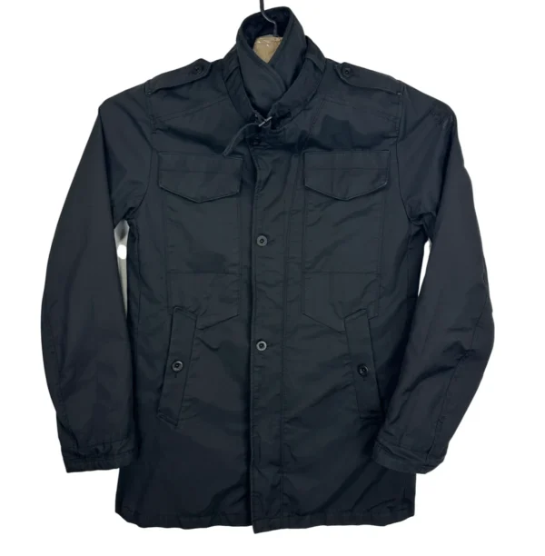 G-Star Fleet Garber Trench Coat Jacket Mens Large Black Full Zip Pockets Vintage